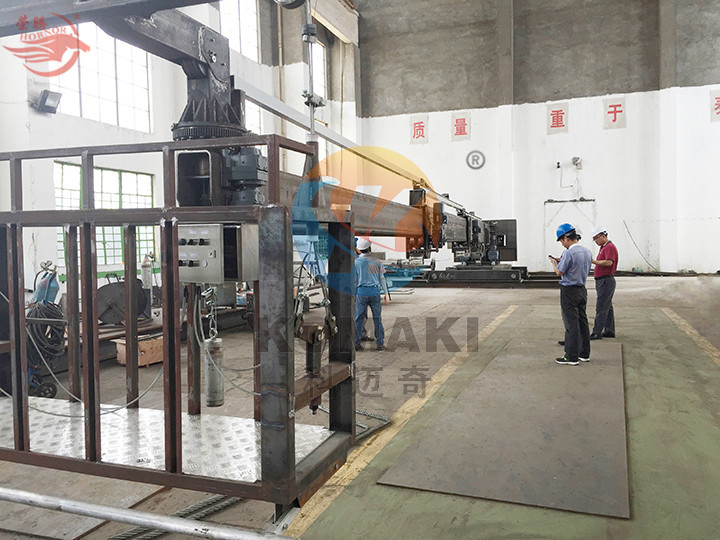 轨道式水蜜桃久久夜色精品国产下载通过轨道系统与建筑物结构相连,轨距一般为0.8~2.0m,两条轨道的设置可在一个平面也可不在一个平面上。轨道系统由基座、连接件和轨道三部分组成。基座预埋件由1块预埋钢板和4根φ16地脚螺栓组成,用螺母将预埋螺栓与预埋钢板固定,在建筑物结构封顶前交土建单位浇注水蜜桃久久夜色精品国产下载基座,基座高度应高于屋面面层80mm以上。基座施工完毕后通过调节预埋螺栓上的螺母将所有预埋钢板调至同一平面,二次灌浆填满缝隙后固定预埋钢板,后用轨道连接件(压板)将轨道固定在预埋钢板上。水蜜桃久久夜色精品国产下载轨道选用工字形钢或H形钢,一般将轨道直接焊接在预埋钢板,由于施工简便、可靠,水蜜桃久久夜色精品国产下载运行平稳等优点而被大量采用。轨道安装完成后基座与屋面统一做防水处理。